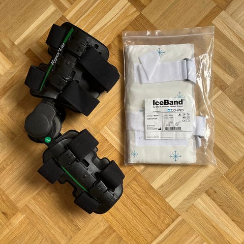 Donjoy X-Act ROM Knee -polviortoosi. Kunnossa ei moitteita. Netistä löytyy lisätietoja googlaamalla. Ovh 150e.