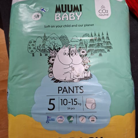 Myydään avaamattomat Muumi housuvaippapaketit.