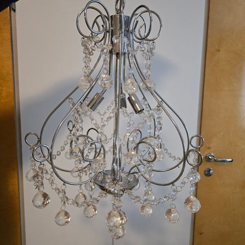 Kruunulamppu kattoon, matala kulta-kristalli, vintage. 30 eur.