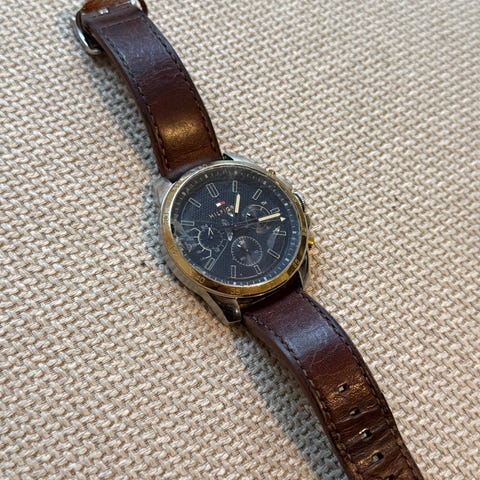 Tommy Hilfiger miesten rannekello, valmistettu kestävästä teräksestä. Tyylikäs muotoilu sopii sekä arkeen että juhlaan. Paristo vaihdettu 2kk sitten . Mukaan tulee yksi jatko pala . Postitus kulut ostajalle.