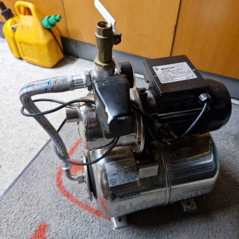 Kunnossa oleva vesipumppu, kotimaassa valmistettu.