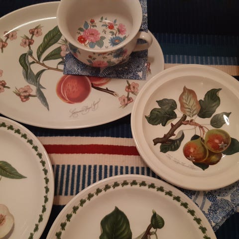 Myydään uudenveroinen englantilainen vintage Portmeirion pieni astia kannellinen sokerikko makeisrasia Flowers Seasons,