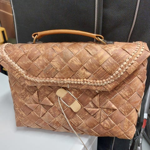 Hajuton siisti tuohilaukku. Mitat n. 9 x 24 x 27cm. Karjalaista käsityötä. Vintage. Postitus (9e) tai haku. ● Myydyt suljen aina. ● En tee toridiilejä.