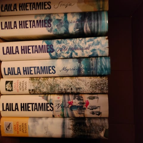 Laila Hietamies Sonja sarja 5 kirjaa. Sonja v.1993. Valkoakaasiat v.1994. Myrsky pilvet v.1995. Satakielimetsä v.1996. Viktoria v.1997. Mielummin kaikki kerralla.
