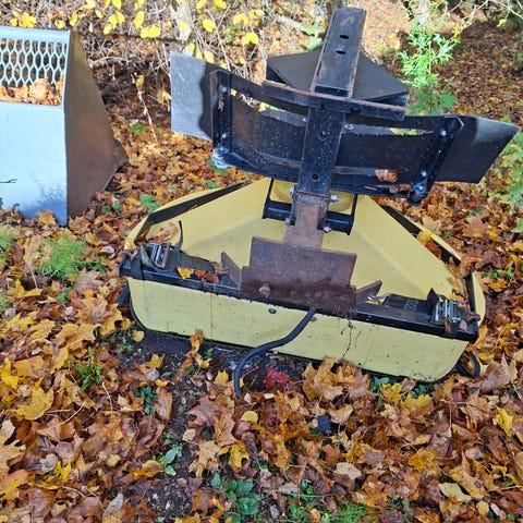 Tästä pikkupihaan talveksi hiekanlevitin tai siemenlinko. Meillä siirrytty isompaan kalustoon.