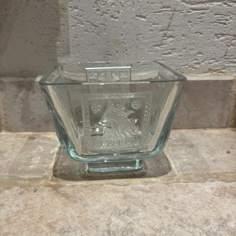 Hieno esine ja kuvat kertoo mimmonen on eli halkeema on mut ei tunnu mitenkään sormiin ja muuten ehjä eli lasissa ollut joku jännite ja tehnyt tommoisen halkeeman ku näkyy kuvissa . Voin myös postittaa 10€