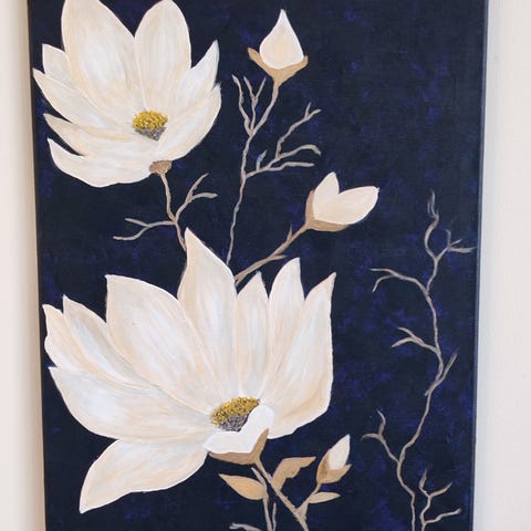 Myydään v. 1989 maalattu kaunis kukkataulu valkoisilla kehyksillä