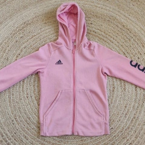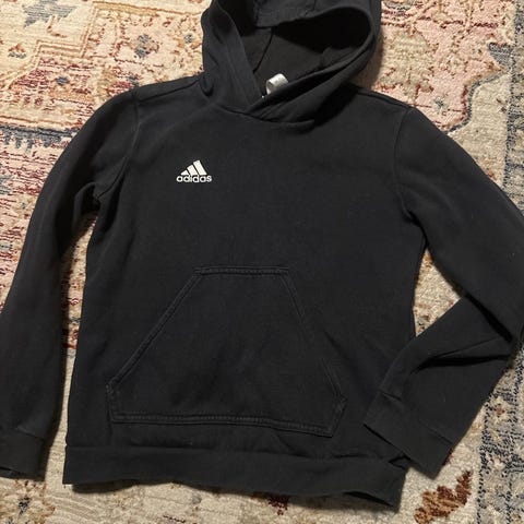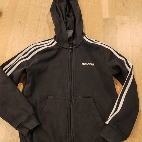 Siisti käytetty adidaksen collegehuppari kokoa 140cm. Hiukan pesuhaitua pinnassa ja printissä rakoilua. Takana helmaresorissa jokin tummentuma/tahra.