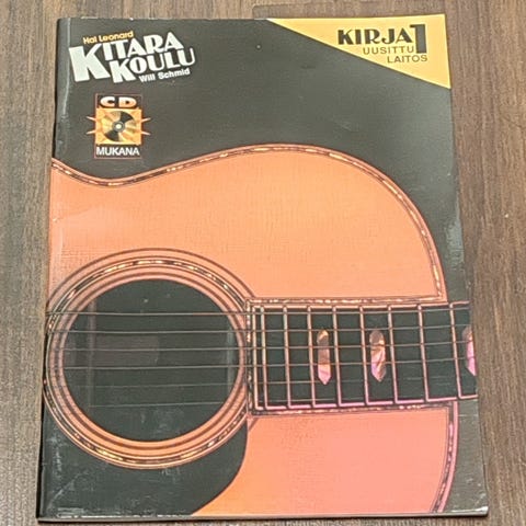 Myydään kuvan pehmeäkantinen kirja Guitar method book 1, Hal Leonard. Kirjassa on muutamia merkintöjä alkupuolella. Mukana ollutta cd-levyä ei löydy.