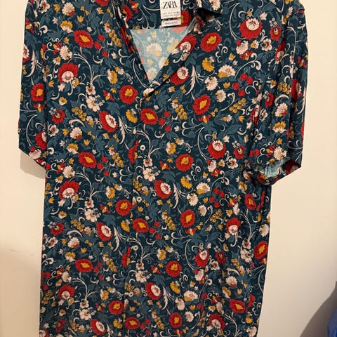 Myynnissä miesten Zara vaalea paita / pusero / t-paita, koko S. Nappikiinnitys edessä, tumma kuviointi. Hintapyyntö noudettassa 5,-