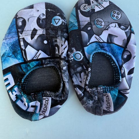 Slipstop tossut kokoa 18-20. Kärjessä hieman tummentumaa/ihan pientä kulumaa mutta ehjät ja tossujen yleisilme siisti. Koiratalous.