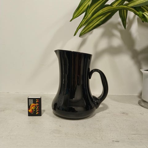 Hienostunutta mustaa lasia joka taittuu valossa violettiin.