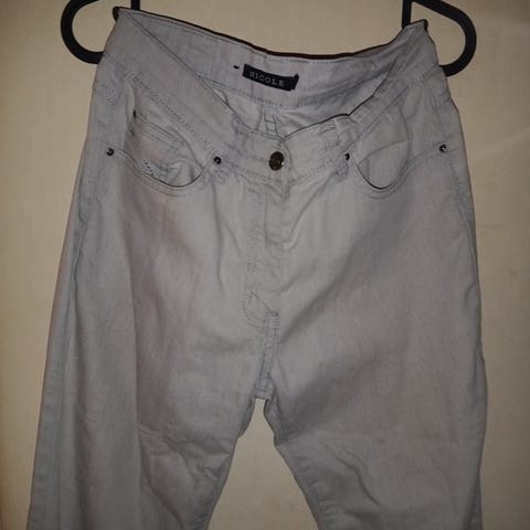 Mom-jeans tyyliset farkut koossa L, vyötärönleveys 46cm ja haara-lahjeväli 72cm