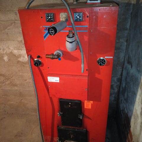 Kaksoispesäkattila. Vm -95. Toimivana käytöstä poistettu. Lämmönsäätö suntti puuttuu. Voidaan nostaa etukuormaajalla kyytiin.