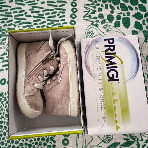Imac-merkkiset (eli kai oikeastaan sama firma kuin Primigi ) pinkit nahkakengät strassikiveillä. Vetoketju sivussa, joten helpot laittaa päälle. Sopivat hyvin myös hieman levempään jalkaan, eli vähän leveämpi lesti.