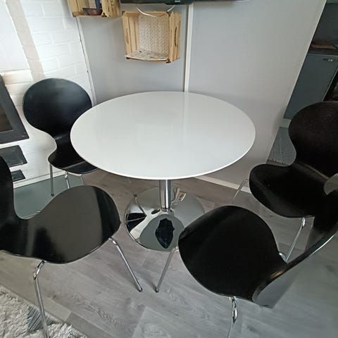 Ostetaan valkoinen, jatkettava ruokapöytä ilman tuoleja.