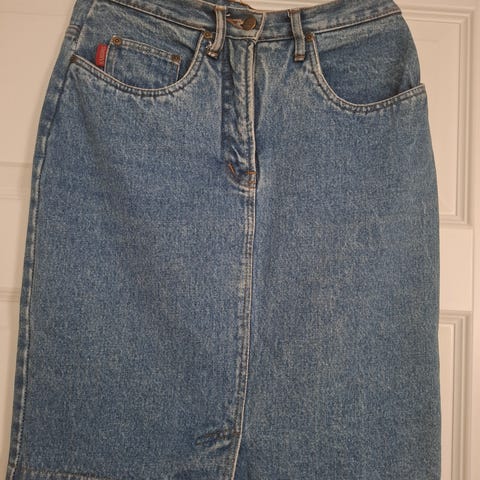 Levi's button thru mom skirt. Koko 29. Ihana farkkuhame, edessä napitukset. Kroppaa imarteleva malli. Erittäin hyväkuntoinen. Vero Modan uusi vaaleansininen/valkoinen toppi. M-koko. Hinta setille.