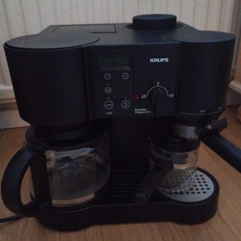 Punainen OBH Nordica espressokeitin. Hinta 10 euroa.