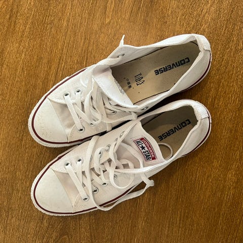 Kohtalaisessa kunnossa olevat mustat nahkaiset miesten Converse lenkkarit, koko 42,5.