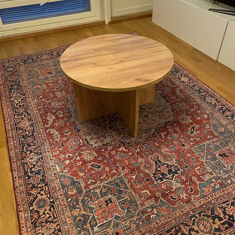Sopii hyvin ruokapöydän alle, eteiseen tai vaikka terassille.