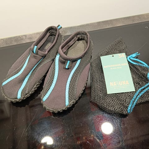 Neopreenikengät avantoon, uimahalliin ja ranta-aktiviteetteihin. Pitävä näppyläpohja. Poistopiste.
