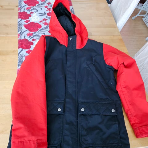 Burton laskettelutakki koossa 122-137. Käytetty kunto, kuvissa näkyy virheet. Lumilukko löytyy.