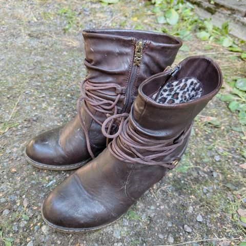 Ruskeat nahkaiset kengät. Kunto hyvä, sisäpohja hieman kantapään kohdalta kulunut.