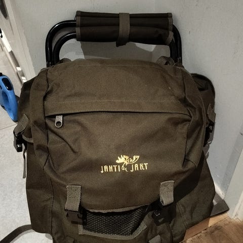 Uutta vastaavassa kunnossa. Laukussa iso päätasku ja muutama pienempi tasku. Läpän päällä avattava verkkopussi, jossa olkaimet. Laukun alla istuinalusta. Huomattavasti mukavampi kantaa kuin vastaavan kokoista reppua. Googlesta löytyy tarkemmat tiedot.