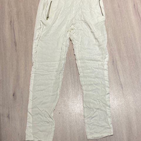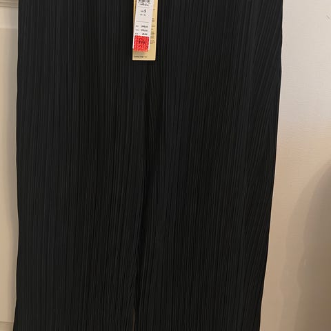Lindexin Holly & Whyte -merkkiset Ava-malliset mustat housut. Kankaassa haaleat raidat. Sivuilla taskut. Vyötäröllä kuminauharesori ja naru. Hyvässä kunnossa. Koko S. Vyötärönympärys ilman venytystä 74 cm. Pituus edestä 97 cm. Materiaali 63% polyesteria, 29% viskoosia, 5% villaa ja 3% elastaania.