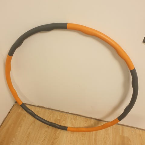 Hyvässä kunnossa oleva Sport+ Fitness Hula Hula -vanne. Tarkoitettu selkä- ja lantiolihasten kehittämiseen ja vahvistamiseen. Aaltomainen muotoilu. Vanne on helppo purkaa ja kasata ja se menee pieneen tilaan. Muutamassa osiossa painaumia, jotka näkyvät kuvissa. Painaumat eivät vaikuta käyttöön mitenkään.