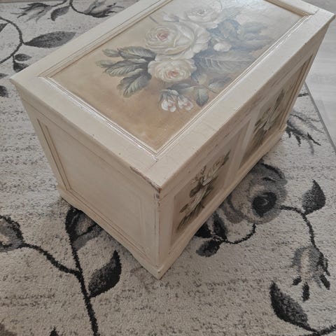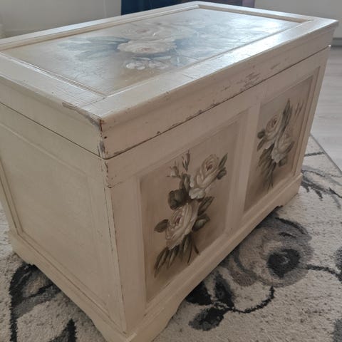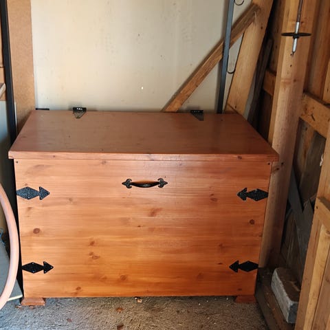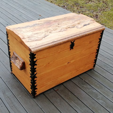 Säilytysarkku sinistynyttä mänty, pintakäsittelynä himmeä Osmovaha.