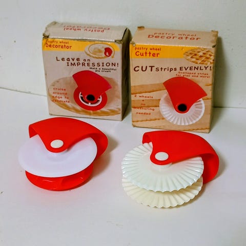 Myydään italiasta ostettu, käyttämättömäksi jäänyt taikinaleikkuri. Sopii myös pastan leikkaamiseen. Terän leveys n. 5,5 cm. Puinen kahva.