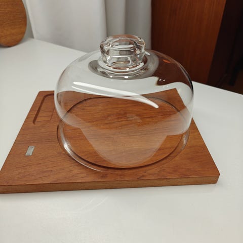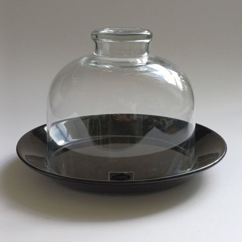 Tässä kohteessa myydään Saara Hopean hieman matalampi versio isommasta juustokupu 1923 ja siihen kuuluva Kilta-sarjan mustanruskea lautanen.