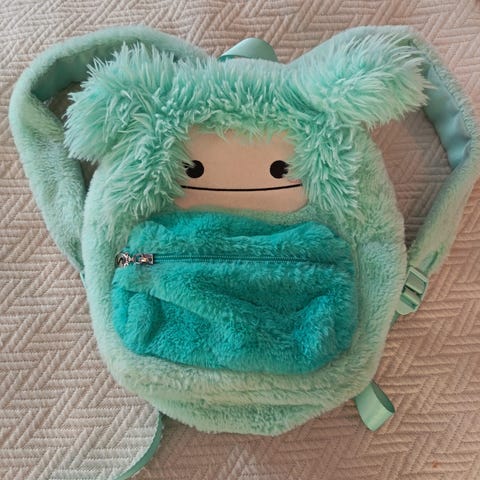 Aivan ihana vaalean lila, aito Squishmallows pikkureppu. Nouto tai postitus. Ihana kerhoon, retkille tai shoppailuun. Sopii myös pyöräilevälle pikkutavaroiden kantoon.