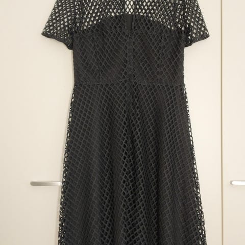 Myydään tyylikäs Karen Millen musta juhlamekko kauniilla pitsibrodeerauksilla, alla puuterin värinen ohut vuorikangas. Kankaassa pieni jousto. Käytetty kahdesti. Koko 40, menee 36/38 kokoiselle.