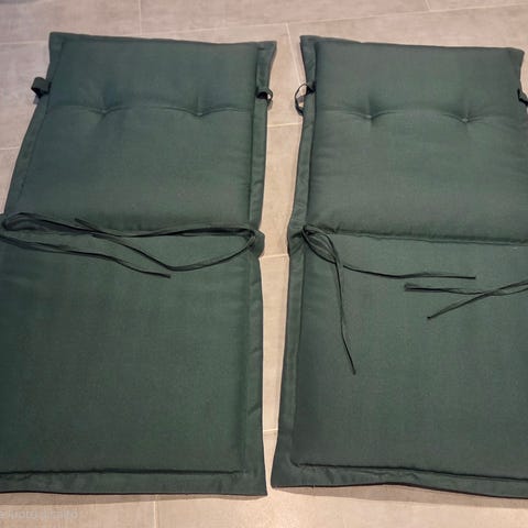Hyväkuntoiset, käytetyt, Ikeasta ostetut piharuokapöydän tuolien pehmusteet.