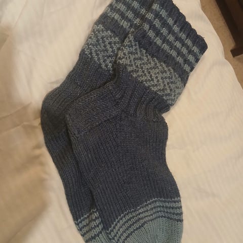 Siniset villasukat. Pohjan pituus kuvassa :)