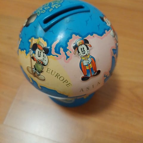 90-luvun retroa, Op:n Hippo säästölippaat. Sinitakkiset, täysin ehjät, kuin uudet