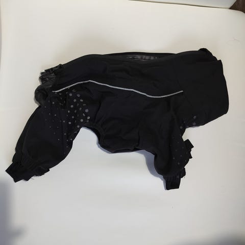 Siististi käytetty Hurtta-sadepuku (M), aktivointilelu, kuljettimia, neljä ruoka-astiaa, 1,97kg seinipriruokaa, paljon viljattomia herkkuja.