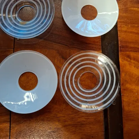 Materiaali lasia. Halkaisija 7 cm. Osassa steariinitahroja.