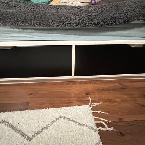 Sotkan sänky kolmella säilytyslaatikolla. Piscina-patjan saa mukaan. Käytönjälkiä rungossa, mutta ehyt.