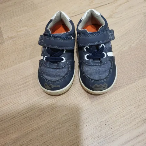 Siniset kankaiset lasten kesäkengät kokoa 22/23. Käytetty pari kertaa. Vastaa mielestäni kokoaan. Kengän mitta pohjasta ~16 cm.