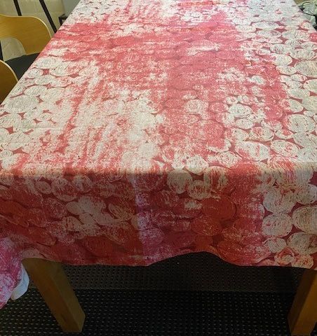 Materiaali 100% puuvilla. Suunnitellut Marimekolle Fujiwo Iishimoto. Väri: oranssi/keltainen.