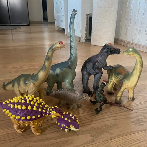 Myydään settinä kaikki kerralla 20 € (dinojen korkeus 13-17 cm) tai yksitellen 5 €/kpl.