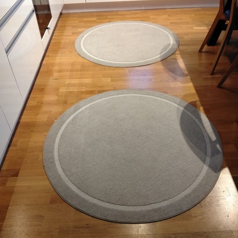 Kotimaiset pyöreät nukkamatto 2 kpl. Harmaa. Halkaisija 100 cm. Yht. 50 €, erikseen 30€/kpl. Voi toimittaa Kuopion ja Varkauden suuntaan omien kulujen mukaan.