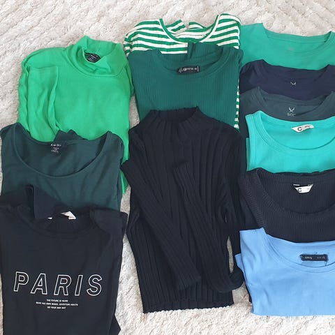 - Gina Tricot trumpettilahkeiset housut. Koko XS, mutta vastaa paketin vaatteiden kokoa. Muuten siistit, mutta polvessa on pieni, helposti paikattavissa oleva reikä.
