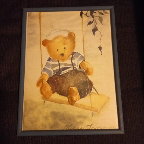 Minna Immosen taideteos, maalattu kankaalle. Koko 30 x 30 cm. Ripustuskoukku.