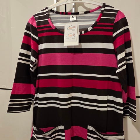 Uudenveroinen kaunis Nanso tunika, koko S (oversize). Sinivalkoinen pilkullinen kuviointi. Taskullinen ja sivuhalkiot. Sopii rentoon tai arkikäyttöön. Mitat ja materiaali tiedot kuvissa. Käytetty kerran kaksi; ei käytön jälkiä.