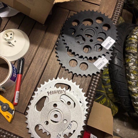 Taka mm. 45, 41, 40, 39 hampaisia. Mustaa ja hopeaa. 7 e kpl