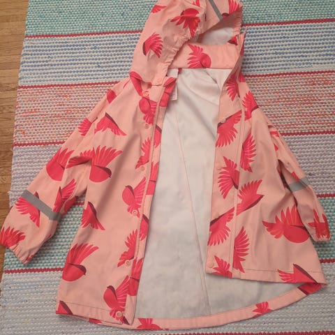 Myydään ihana Reima lasten sadetakki. Väri tummansininen kukkakuviolla. A-linjainen pitkähkö malli.